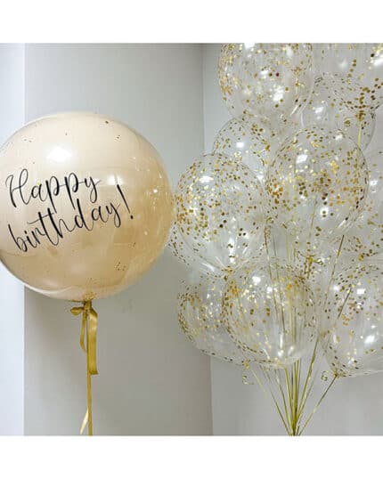 Надписи на стеклянных шарах держатся долго и не теряют формы, но из-за большего веса баблс и конфетти они летают меньше по времени, чем обычные латексные шары этого же размера.